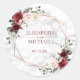 Dieses moderne, elegante und trendige, klassische, runde Hochzeitstickerdesign besticht durch seine geometrisch geformten Imitat aus Kupfer, die mit Eukalyptusgrün und bordeauxroten und rosa Blumenarrangements geschmückt sind. Die Einrichtung besteht aus einem Imitat aus weißem Marmor. Die Namen der Paare und das Hochzeitsdatum sind in einer passenden bordeauxfarbenen Farbe. Teil eines entsprechenden Set. Copyright Elegant lädt ein. Alle Rechte vorbehalten.