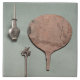 Kupferne Haarnadel, Collyriumstange mit Topf und Fliese
