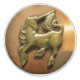 Einzigartiger Keramikgriffentwurf, der ein schönes, Vintages, kupfernes/Messingunicornmedaillon kennzeichnet.