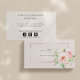 Eine wunderschöne, feminine Visitenkarte mit einem blauen Hintergrund mit einem blütenrosa Aquarell und einem Bouquet aus Eukalyptusgrün, das einen Rahmen aus Kupferfolie aus Imitat unterstreicht. Leicht personalisiert durch Editieren von Platzhaltertexten. Copyright Elegant Invites, alle Rechte vorbehalten.