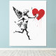 Ein moderner Blick auf Cupid, aber anstelle eines Bogens und Pfeils hält er eine Spraylackierdose, die ein Herz an einer Wand befestigt. Das schlichte und dennoch auffällige Design mit einem rebellischen und romantischen Ambiente.