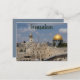 Auf dieser Postkarte befindet sich die Kuppel des Felsens, ein islamischer Schrein, der sich auf dem Tempelberg in der Altstadt von Jerusalem befindet. Ursprünglich wurde es in den Jahren 691-92 u.Z. auf Befehl von Umayad Kalif Abd al-Malik während des zweiten Fitna auf dem Gelände des zweiten jüdischen Tempels, zerstört während der römischen Belagerung von Jerusalem im Jahre 70 u.Z. Nachdem die ursprüngliche Kuppel 1015 zusammengebrochen war, wurde sie 1022-23 wieder aufgebaut. Die Kuppel des Felsens ist eines der ältesten noch erhaltenen Werke der islamischen Architektur. Der Tempelberg ist der drittgrößte Urlaubsort für Muslime hinter Mekka und Medina. In der muslimischen Tradition machte der Prophet Mohammed seinen "Nachtweg" zum Thron Gottes. Genießen Sie Ihren neuen Kuppel der Rock Jerusalem Postkarte!