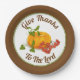 Kürbisbeeren, Blätter fallen Erntedank Papierteller. Es enthält einen gelben und orangefarbenen Kürbis mit Blätter, roten Beeren und der Text geht" Give Dankeschön an den Herrn". Es gibt eine braune Grenze um sie herum.