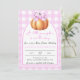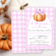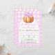 Lassen Sie Ihre Gäste mit diesem Kürbis in rosa Bug, rosa Käfig und Bogen Babydusche einladen. "Ein kleiner Kürbis ist unterwegs."