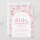 Feiern Sie Ihr kleines, süßes Mädchen mit dieser eleganten Wasserfarbendusche mit einem weichen rosa Bogen, Coquette Charme und einem ansprechenden Kürbis-Design. Dieses Thema "Little Pumpkin on the Way" eignet sich perfekt für eine Herbst- oder Herbstdusche und bietet eine Touch von Whimsy und Grace mit pastellfarbenen Wasserfarbenkürbissen, zarten Bändern und femininen Coquette-Details. Ideal für Eltern, die ein kleines Mädchen erwarten, kombiniert diese Einladung wunderbar die Wärme der Herbsternte mit der farbenfrohen rosa Eleganz.