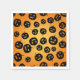 Nahtloses Musterdesign mit Halloween Kürbis Silhouetten auf orangefarbenem Hintergrund.