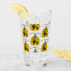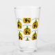 Dieses Glas enthält orangefarbene Kürbis, schwarze Geister, Sterne und Monde mit den Worten "Happy Halloween" über dem Design.