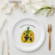 Diese Teller sind mit orangefarbenen Kürbissen, schwarzen Geistern, Sternen und Monden versehen, die über dem Design "Happy Halloween" tragen.
