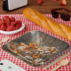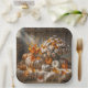 Kürbis und Mums im Herbst in einer Scheune Pappteller
