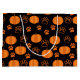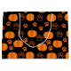 Pumpkins und Pfoten für ein Halloween-Pfoten. Diese niedliche Geschenktasche mit orangefarbenen Pfoten und Kürbissen auf schwarzem Hintergrund eignet sich hervorragend für Halloween-Geschenke für Hunde oder Hundefreunde und Hundefreunde und Party. Happy Howloween! Auch auf passender Geschenkverpackung und Papiertaschentuch erhältlich.