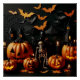 Schwarzer Hintergrund mit beängstigenden Kürbis und Skelett