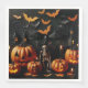 Schwarzer Hintergrund mit beängstigenden Kürbis und Skelett