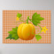 Wunderbarer Herbst- und Herbstkürbis auf eine Weinrebe mit gelben Blüten und grünen Blätter Kunst Poster.