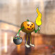 Der Niedliche Halloween-Kürbis mit einer Flammentorche auf einem Trick oder Treat.