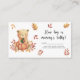 Feiern Sie mit diesem Teddy Bären Thema Baby Dusche Party! Der niedliche Teddybär mit einem Herbstkürbis in seinen Pfoten sitzt im Herbstwald. Auf der Rückseite der Karte befinden sich Herbstblätter. Matching-Elemente verfügbar.