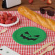 Kürbisgesicht mit grünem und schwarzem Jack Pappteller