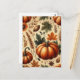 Eine bezaubernde Pumpkin Postcard mit botanischer Vegetation, Herbbelage und festlichen Halloween-Bars. Ideal für Erntefeiern, Herbstfeste und Erntedank-Gruß.
