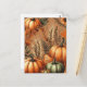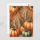 Eine bezaubernde Pumpkin Postcard mit botanischer Vegetation, Herbbelage und festlichen Halloween-Bars. Ideal für Erntefeiern, Herbstfeste und Erntedank-Gruß.