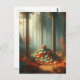 Eine bezaubernde Pumpkin Postcard mit botanischer Vegetation, Herbbelage und festlichen Halloween-Bars. Ideal für Erntefeiern, Herbstfeste und Erntedank-Gruß.