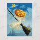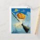 Kürbishexe fliegt auf einen Besen nachts Postkarte
