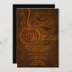 Ein charmanter Kürbiskäfig mit zwei davon fliegenden Fledermäusen, die sowohl eine Hochzeit als auch ein Halloween-Ereignis darstellen. Der Kürbis hat wirbelnde Tränen und Bars. Die Einladung ist in Orange- und Schwarztönen gehalten, um die unheimliche Halloween-Stimmung Set.