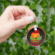 Das ist ein Bild einer Kürbislaterne, die ganz gekleidet ist. Ein orangefarbener Kürbis mit einer roten Hexe, der auf einem grünen Blätter sitzt. Die Kürbislaterne leuchtet mit hellen Augen und einem Lächeln. Es wurde auch ein schwarzer Hintergrund hinzugefügt, sodass man seine Reflexion sehen kann. Eine rote Grenze wurde hinzugefügt. Diese Schlüsselketten sind in verschiedenen Stilen und Größen erhältlich.