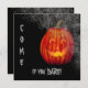 An der Vorderseite dieses Halloween-Party befindet sich ein leuchtend orangefarbener Jack-oder-Laterne, der aus einem gruseligen Eckspinnen-Netz hervorgeht. Im Text auf der Seite und unten steht "KOMMEN Sie, wenn Sie es wagen!" in grau. Die Bilder und der Text werden auf einem dramatischen schwarzen Hintergrund platziert. Die Rückseite der Einladung hat vier separate Felder und viel Platz für Ihre individuellen Party-Informationen. Genau die richtige Menge an Lakai und gruselig! *Clip Art, die in diesem Design verwendet wird, ist urheberrechtlich geschützt durch Encore Software, Inc., die die Nutzung für ihre Lizenzgeber erlaubt. Alle Rechte vorbehalten.