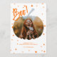Kürbis hat das Drehbuch Halloween weiße Fotokarte mit einem Kürbis ausgeschnitten, orange niedliche Sternenmuster und Halloween Typografie Boo, fügen Sie Ihre Familie Foto für ein spooktacular Halloween! Und ein niedliches Kürbismuster hinten
