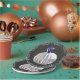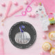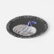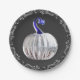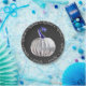 Ein übersetzlicher, silberweißer Glaskürbis mit blauem Stiel ist Set auf grauem Hintergrund und gerahmt mit einem hübschen, silberfarbenen Rahmen. Sehr hübsch, sehr elegant.