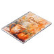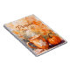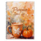 Eine Kürbisspitzlatte mit einem weißen Blatt auf der Tasse neben einem kleinen Kürbis.