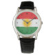 Flag of Kurdistan. The Flag of Kurdistan (Kurdish: Alay Kurdistan also called Alaya Rengîn "The Colorful Flag") first appeared during the Kurdish independence of Republic of Mahabad. It is currently used as the official flag of the autonomous Kurdistan Region in Iraq which is under control of the Kurdistan Regional Government. The flag is banned in Turkey, Iran and Syria. The main Kurdish characteristic of the flag is the blazing golden sun emblem at the center, which is an ancious and cultural symbol among the Kurds and synonymous with fire in representing wisdom in Zoroastrianism. The sun disk of the emblem has 21 rays, equal in size and shape. The number 21 Holds Bedeutung in the alten Ezidi Religious Traditionen of the Kurds. The symboism of the colors are: Red symbollizes the blood of martyrs of Kurdistan and the continued struggle for the freedom and dignity for Kurdistan and its people; Green expresses the beauty and the landscapes of Kurdistan; White expresses peace and equality; and Yellow represents the source of And People.