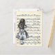 Eine vierschichtige Schablone von Alice auf einem Blatt Musik.