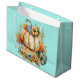 Eine Aquamarine große Geschenktasche mit Herbstpumpen und Blume für Geburtstage oder Erntedank Geschenke.