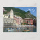 Postkarte des Hafens von Vernazza, Cinque Terre, Italien. Vernazza ist eine Stadt und Gemeinde in der Provinz La Spezia, Ligurien, im Nordwesten Italiens. Es ist eine der fünf Städte in der Region Cinque Terre. Vernazza ist die vierte Stadt in Richtung Norden in die Cinque Terre. Es hat keinen Autoverkehr (eine Straße führt in einen Parkplatz am Stadtrand) und bleibt eines der wahrsten "Fischerdörfer" an der italienischen Riviera.