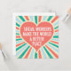 Sozialarbeiter machen die Welt zu einem besseren Ort. Eine schöne, inspirierende soziale Arbeitskarte für einen Sozialdienstleister mit hübschem Retro-Herz und fröhlichen Farben.