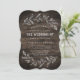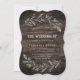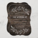 Diese abgerundeten Äste hölzern die Hochzeit der Einladungskarte ist perfekt für eine moderne Hochzeit. Das Landchic-Design zeigt die Silhouette von zwei blumengeschmückten Zweigen, die auf einem Holzboden einen rustikalen grünen Kranz bilden. Weitere Möglichkeiten zur Formulierung von Hochzeitsaufträgen finden Sie in der vollständigen Hochzeitskollektion von abgerundeten Branchen: https://www.zazzle.com/collections/119406265505219166