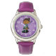 Kinderuhr aus Edelstahluhr mit lila Lederarmband