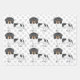 Desteis originelle Cartoon-Illustration eines niedlichen glatten Haar schwarz und tan piebald Fell Farbe Dackel züchten Hund. Das Hundedesign wird neunmal auf jedem Blatt platziert. Der Hintergrund weist ein Muster grauer Hundepfoten auf.