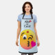 Küssen Sie die Schürze des Kochs mit einem küssen Emoji auf hellblauem Hintergrund. Gutes Geschenk oder Valentine Leckerei für jeden, der gerne kochen oder backen.