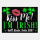 Spaß, helle, fröhliche St. Patrick's Day Gruß mit der Nachricht "Kiss Me! Ich bin Irin! Nun, irgendwie, Sorta, ISH!" Das Design ist geprägt von puckreichen Lippen, Kleeblatt und Herzgrafiken auf schwarzem Hintergrund. Zurück hat diese vollständig editierbare Botschaft: "Möge das kommende Jahr einfach überfliegen mit Lächeln, Sonnenschein, Regenbögen, endlosen IRISH KISSES. Alles Gute zum St. Patrick’s Day!"