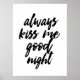 Dies ist ein wunderschönes Produkt mit immer küssen mich gute Nacht Zitat Kunst Grafik in Schwarz-Weiß.