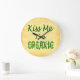 Eine dekorative Wanduhr, die Kiss Me las, ich bin Bio in dekorierten Buchstaben auf einem Imitat Pergament Hintergrund. Passen Sie es an, um Ihren Namen oder Ihre Nachricht hinzuzufügen, die Hintergrundfarben zu ändern, oder sogar Ihr Design für später retten.