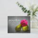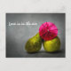 Zwei Birnen-Früchte hinter dem roten Cocktailschirm. Wasser fällt um sie herum. Der Himmel ist grau und das Wetter ist stürmisch. Funny personalisierbare Postkarte. Sie können die Liebe des Vorlagentextes ändern oder löschen. Eine koordinierte Briefmarke ist verfügbar.