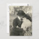 Das ist eine wunderbare Postkarte mit einem alten Foto von zwei Liebhabern, die sich küssen. Sehr romantisch.