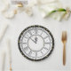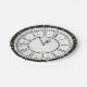 Auf dieser Papierplatte befindet sich eine schwarze Uhr mit römischen Ziffern auf weißem Hintergrund. Um den Rand der Platte ist ein schwarzer Rand mit goldenen Sternen. Im Inneren der Uhr steht: "Küss mich um Mitternacht." Ideal für Silvester oder jede andere formelle Ansammlung.