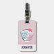 Personalisierter Gepäckanhänger mit einem niedlichen Cartoon von einem Bärenpaar, der Bär ist pastellrosa mit einem kleinen Bogen und küsst die Wange eines blauen Bären, der sehr erfreut aussieht. Ein kleines rosa Herz schwebt über ihren Köpfen. Sehr niedlich und Kawaii. Das Hintergrundmuster ist eine gedämpfte rosa Farbe mit weißen Polka-Punkten.