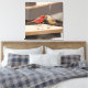 Charmante Männer und Weibliche Nord-Kardinal scheinen liebevoll zu küssen, auf diesem fröhlich umhüllten Leinwand. Spaß Dekor für Zuhause oder Büro!