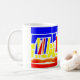 Die Küste Deckchairs Tasse basiert auf einer ursprünglichen Wasserfarbe-Leinwand, die im Jahre 2012 gemalt wird. Dieses Tassenbildmotiv ist speziell, weil es ein glückliches Kindheitsgedächtnis eines sonnigen Küstefamilienfeiertags gefangennimmt. Sehen Sie auch die Küste Deckchairs Leinwand.