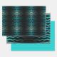 Geschenkverpackungspapier Set von 3 Blättern gedruckt mit Coastal Beach Salty Turquoise Waves Abstrakt Art wiederholen Muster Design Original-Kunstwerk Illustration von TheFabricSeal Print on Demand Shop unter Zazzle.com #ZazzleMade https://www.zazzle.com/store/thefabricseal TheFabricSeal ©️ Original. Moderne zeitgenössische Kunst, künstlerisch entworfen und gedruckt für Ihr Stranddesign Zuhause und Wohnaccessoires, Wohngestaltung, Modeerklärungen, modernes elektronisches Accessoire und Geschenktöne. Das ist ein wirklich cool aussehendes, vierteiliges Wiederholmuster, das die Illusion von türkisfarbenen Zebrafellstreifen aufweist. Dieser Pop mit dem Thema Strand an der Küste bietet viele Farbtöne wie blau grün türkis, aquamarin, Meerschaum, Aqua, Cyan, Zeleste, Opal, Aquamarine, Jade, Karibik, Tropen, Islander, Ozeanwasser und arktische Gletschereispalette auf einem Jet schwarzen Hintergrund darunter.