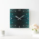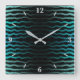 Square Wall Clock, Wandkunst Dekoration und dekoratives Dekorations-Accessoire mit Coastal Beach Salty Turquoise Waves Abstrakt Art Wiederholen Muster Design Original-Illustration von TheFabricSeal Print on Demand Shop unter Zazzle.com #ZazzleMade https://www.zazzle.com/store/thefabricseal TheFabricSeal ©️ Original. Moderne zeitgenössische Kunst, künstlerisch entworfen und gedruckt für Ihr Stranddesign Zuhause und Wohnaccessoires, Wohngestaltung, Modeerklärungen, modernes elektronisches Accessoire und Geschenktöne. Das ist ein wirklich cool aussehendes, vierteiliges Wiederholmuster, das die Illusion von türkisfarbenen Zebrafellstreifen aufweist. Dieser Pop mit dem Thema Strand an der Küste bietet viele Farbtöne wie blau grün türkis, aquamarin, Meerschaum, Aqua, Cyan, Zeleste, Opal, Aquamarine, Jade, Karibik, Tropen, Islander, Ozeanwasser und arktische Gletschereispalette auf einem Jet schwarzen Hintergrund darunter.